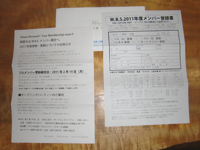 W.B.S.メンバー更新案内が届きました。